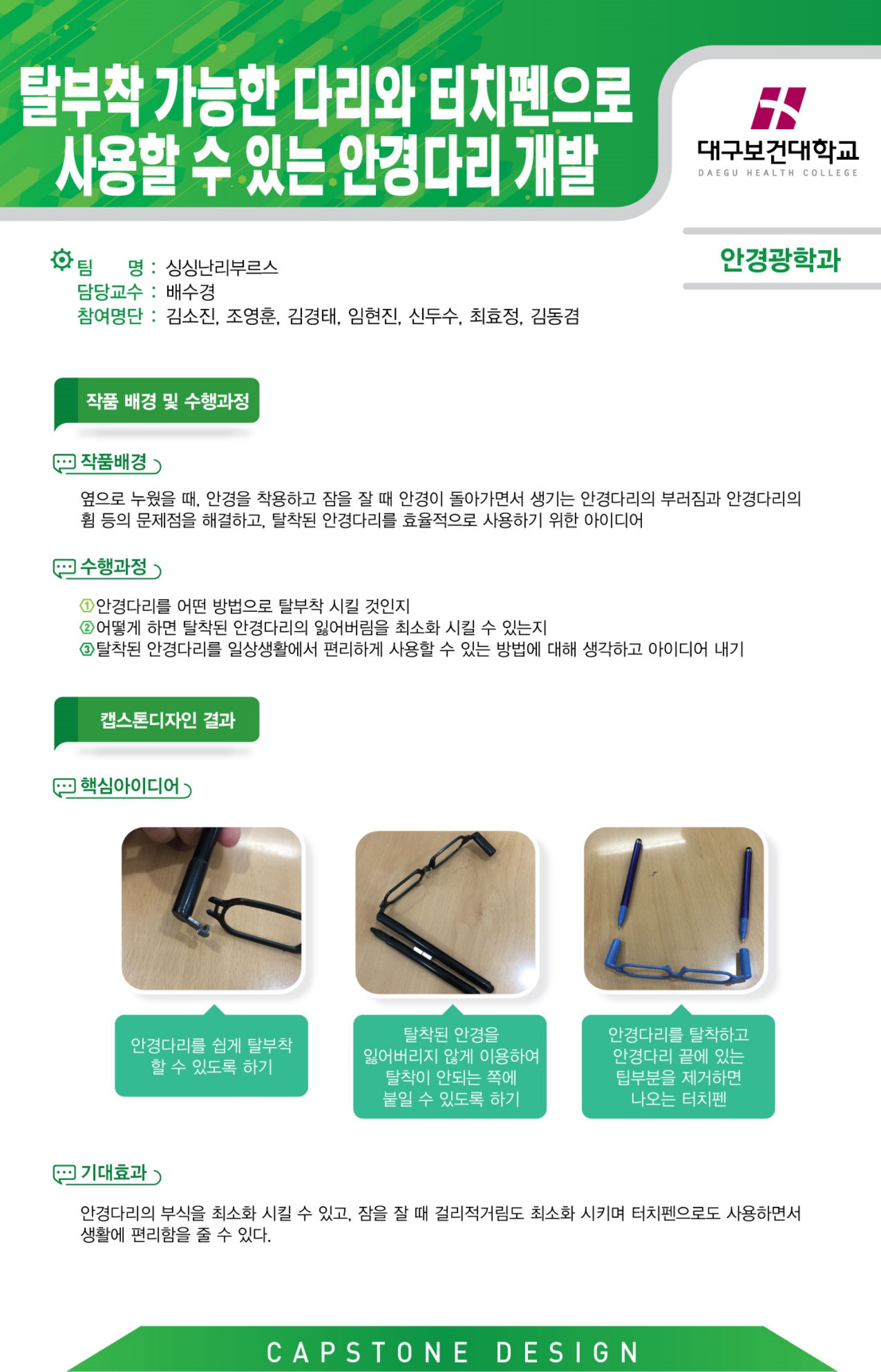 타 이 틀 : 탈부착 가능한 다리와 터치펜으로 사용할 수 있는 안경다리 개발