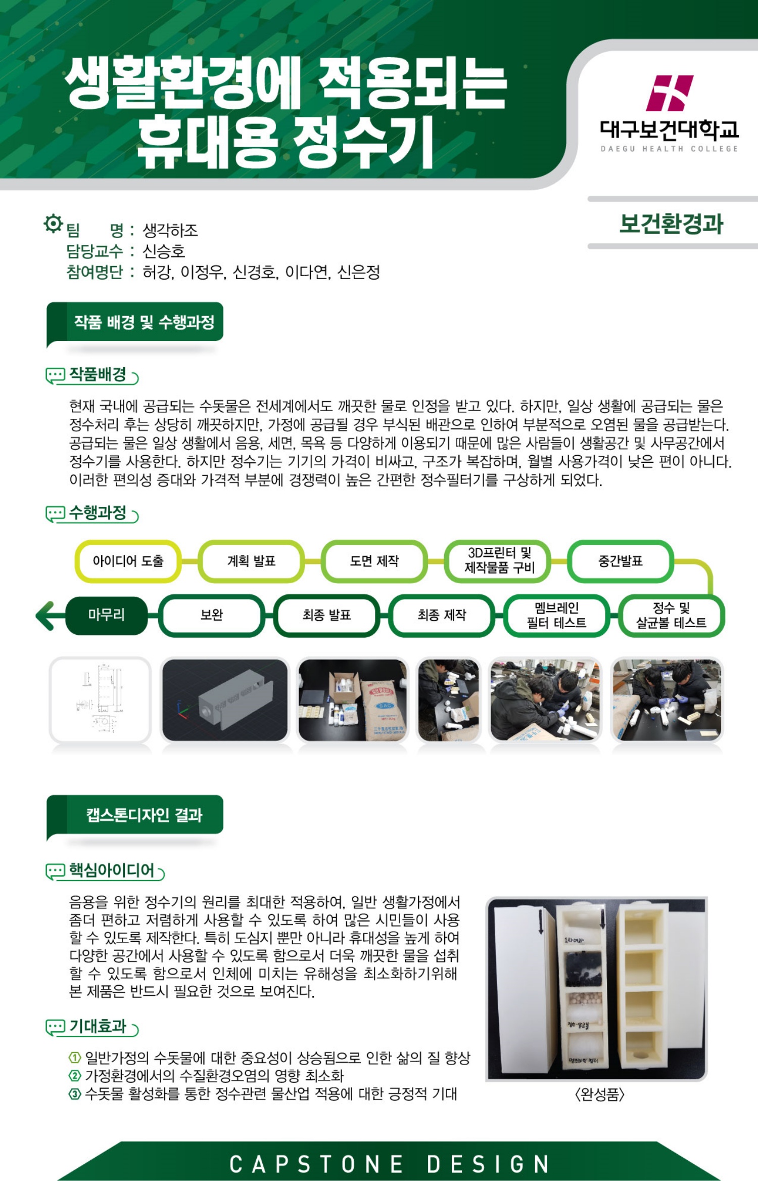 타 이 틀 : 생활환경에 적용되는 휴대용 정수기